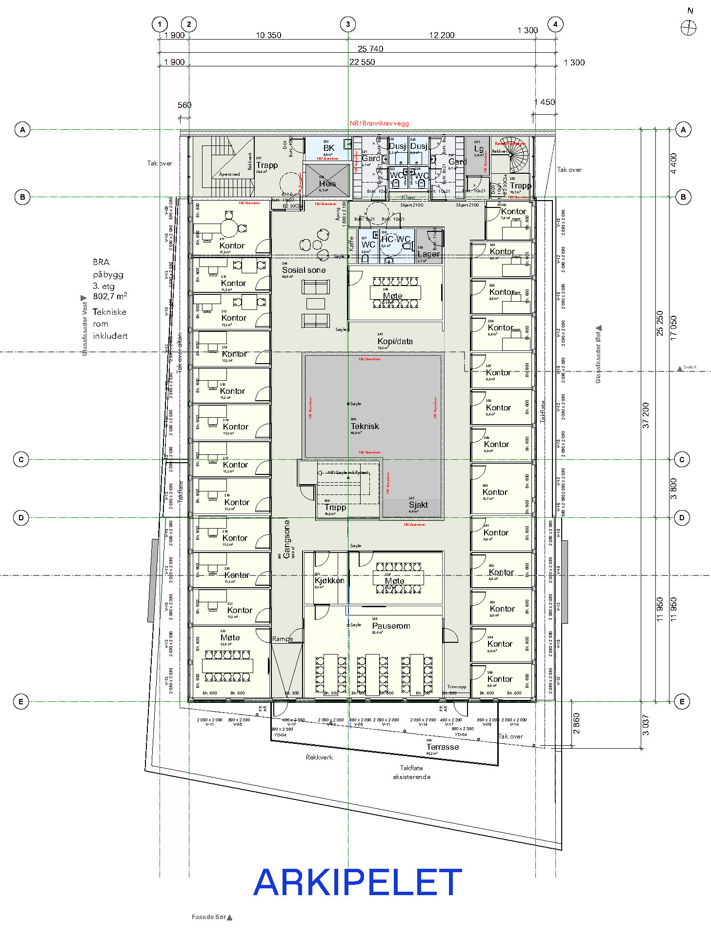 -Nye kontorlokaler i 3. etasje under oppføring.