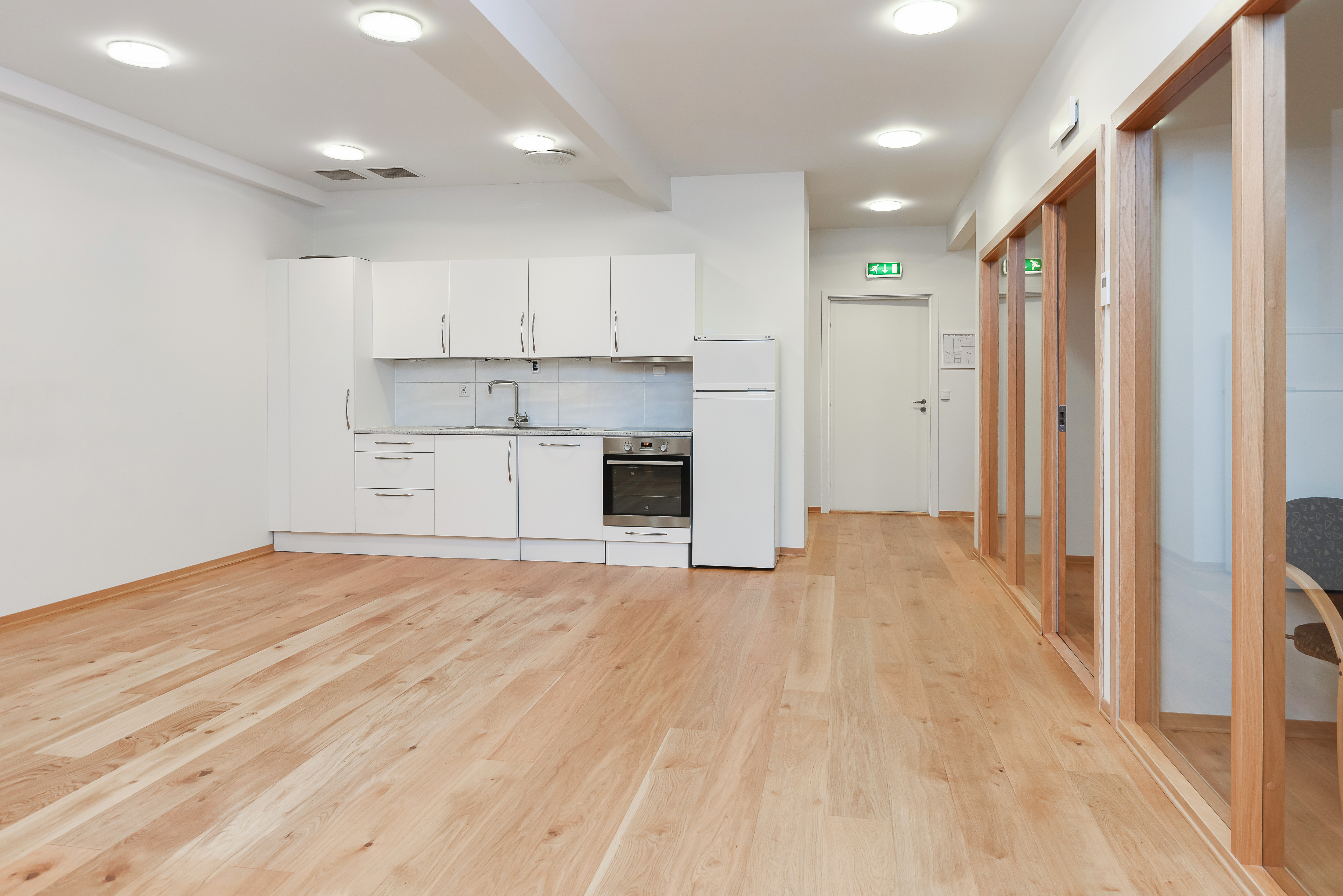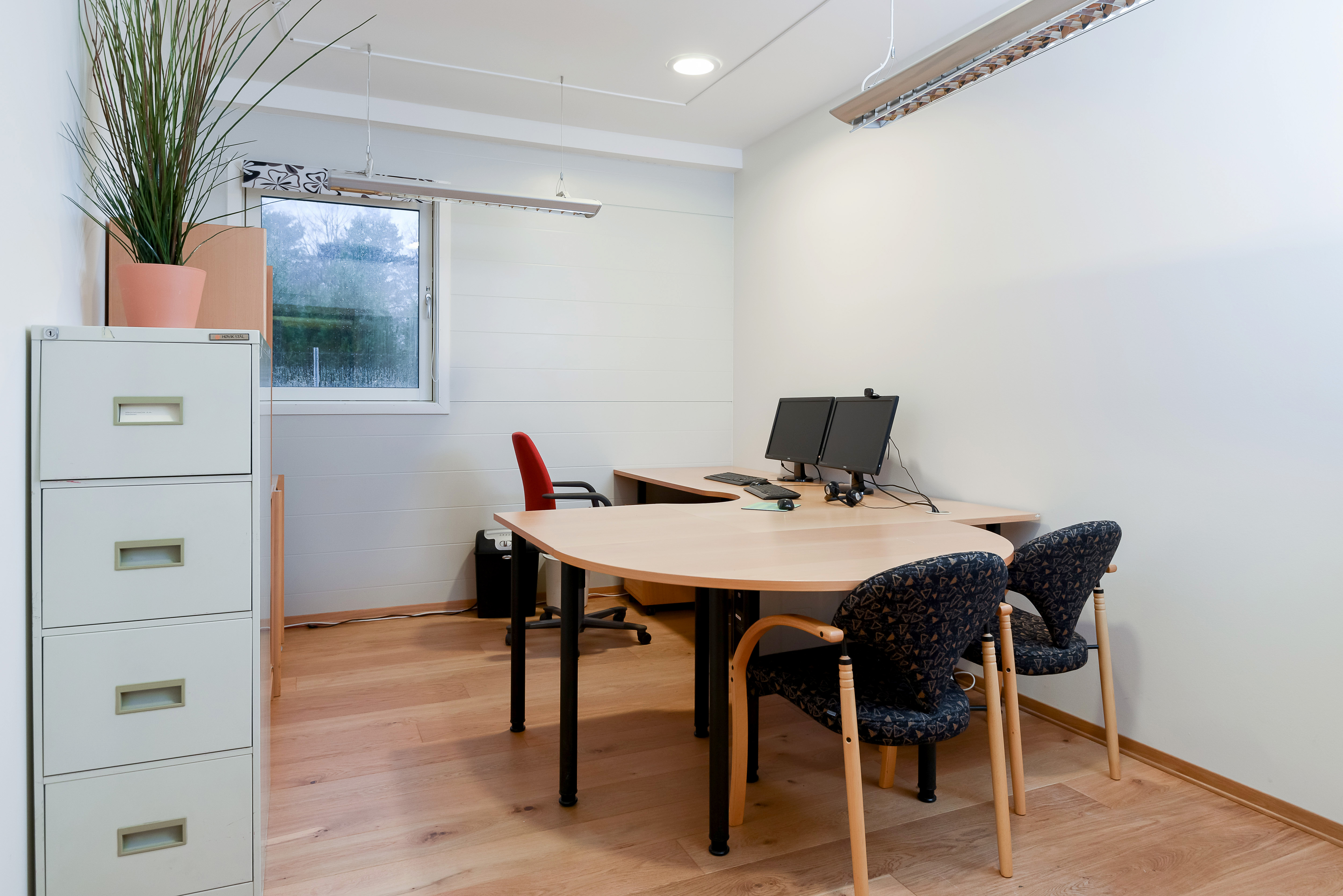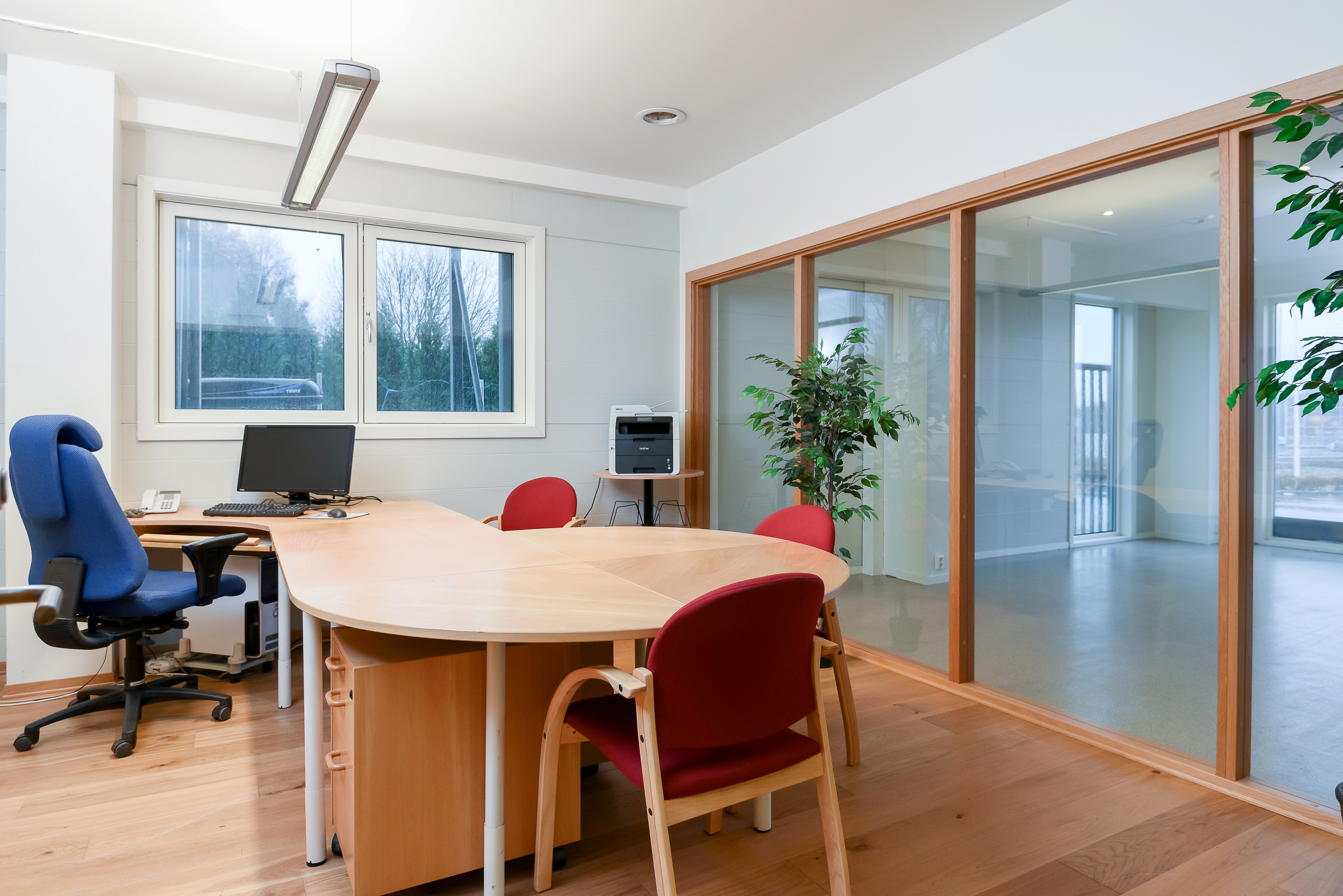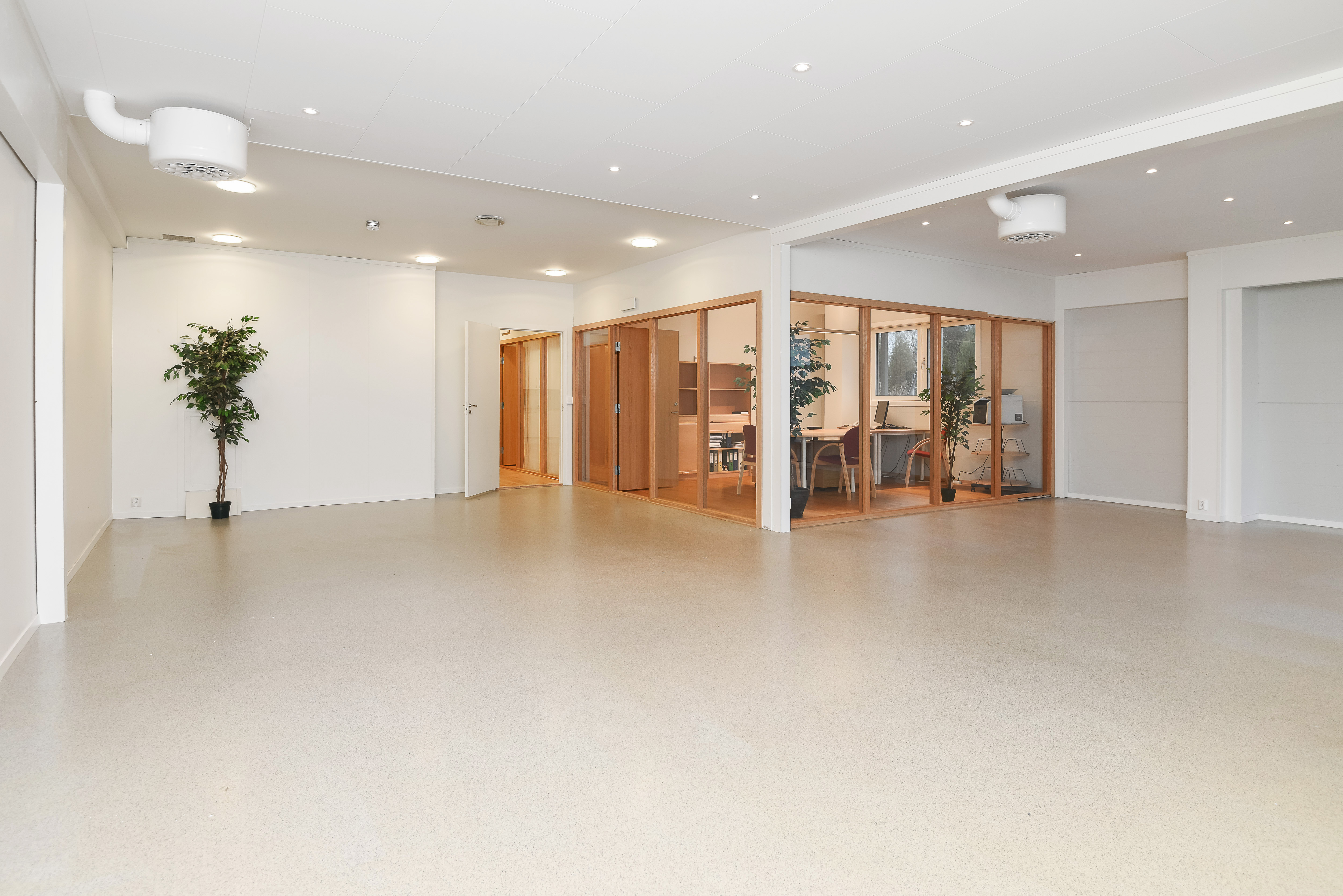 – Kontorfløy med 4 kontor, showroom, møterom, spiserom, wc og arkiv/kopi. Showroom med hovedinngang.