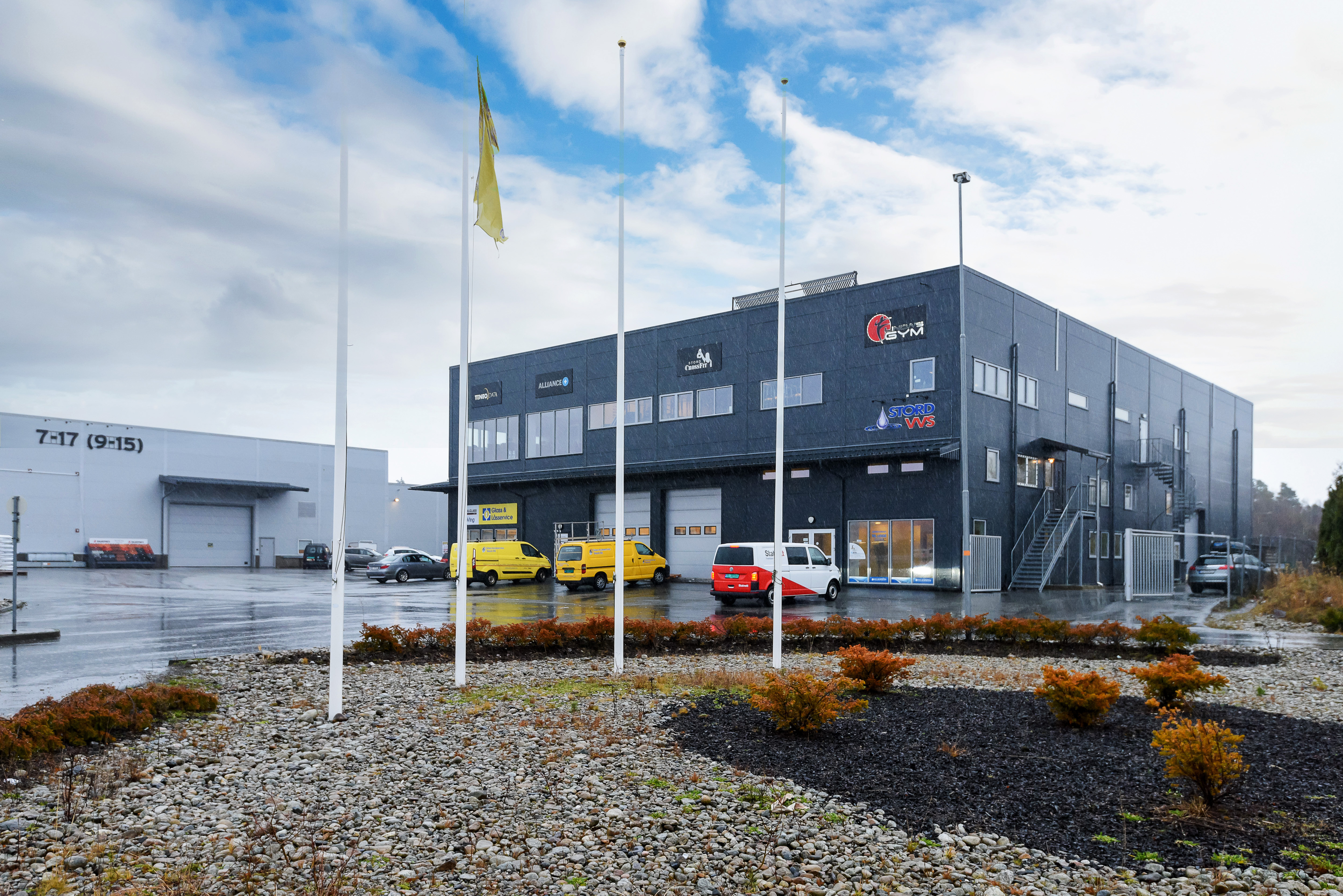 I bygget er bl.a Riis bilglass, Glass & Låsservice, treningssenter med kafedel og Allianceplus.