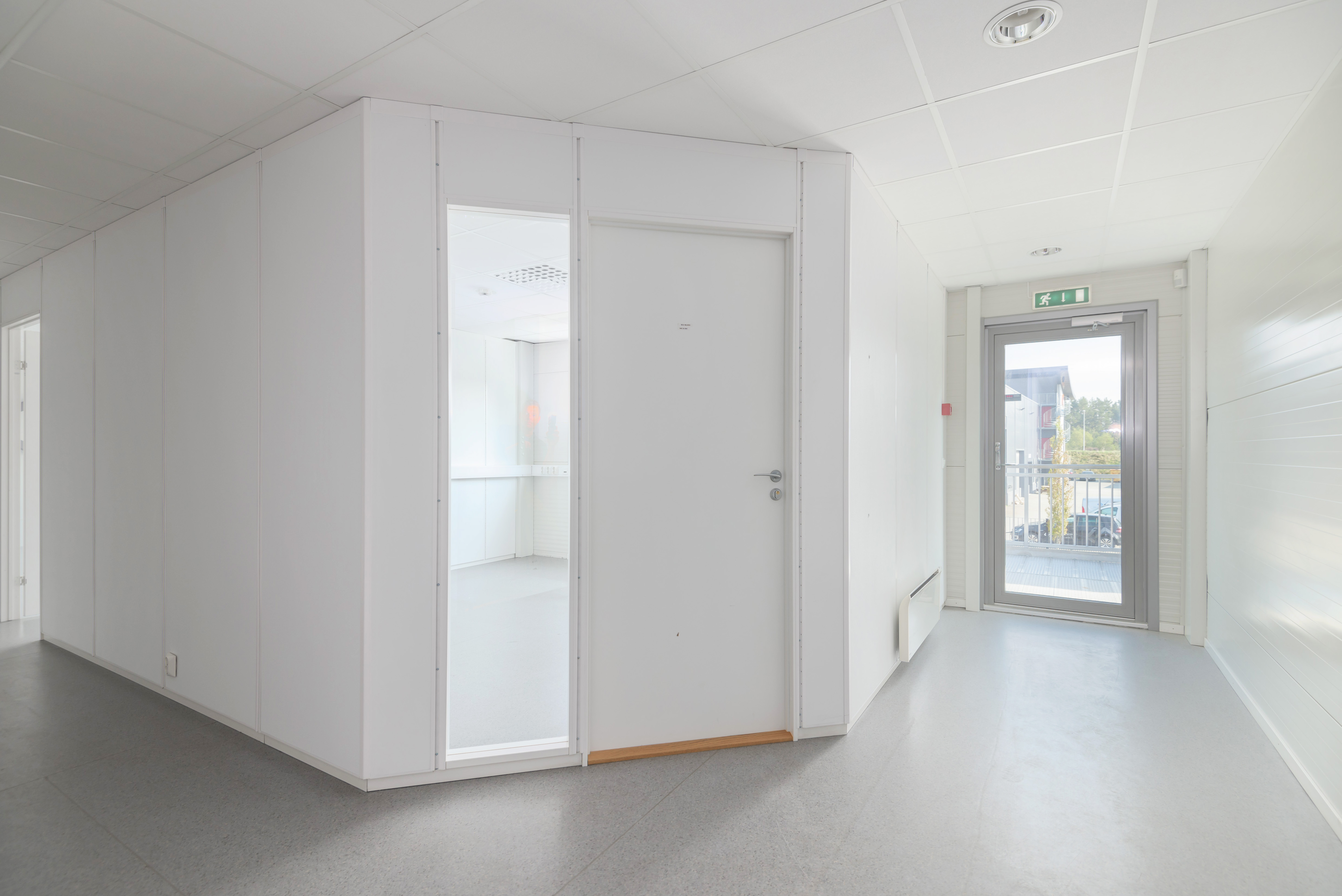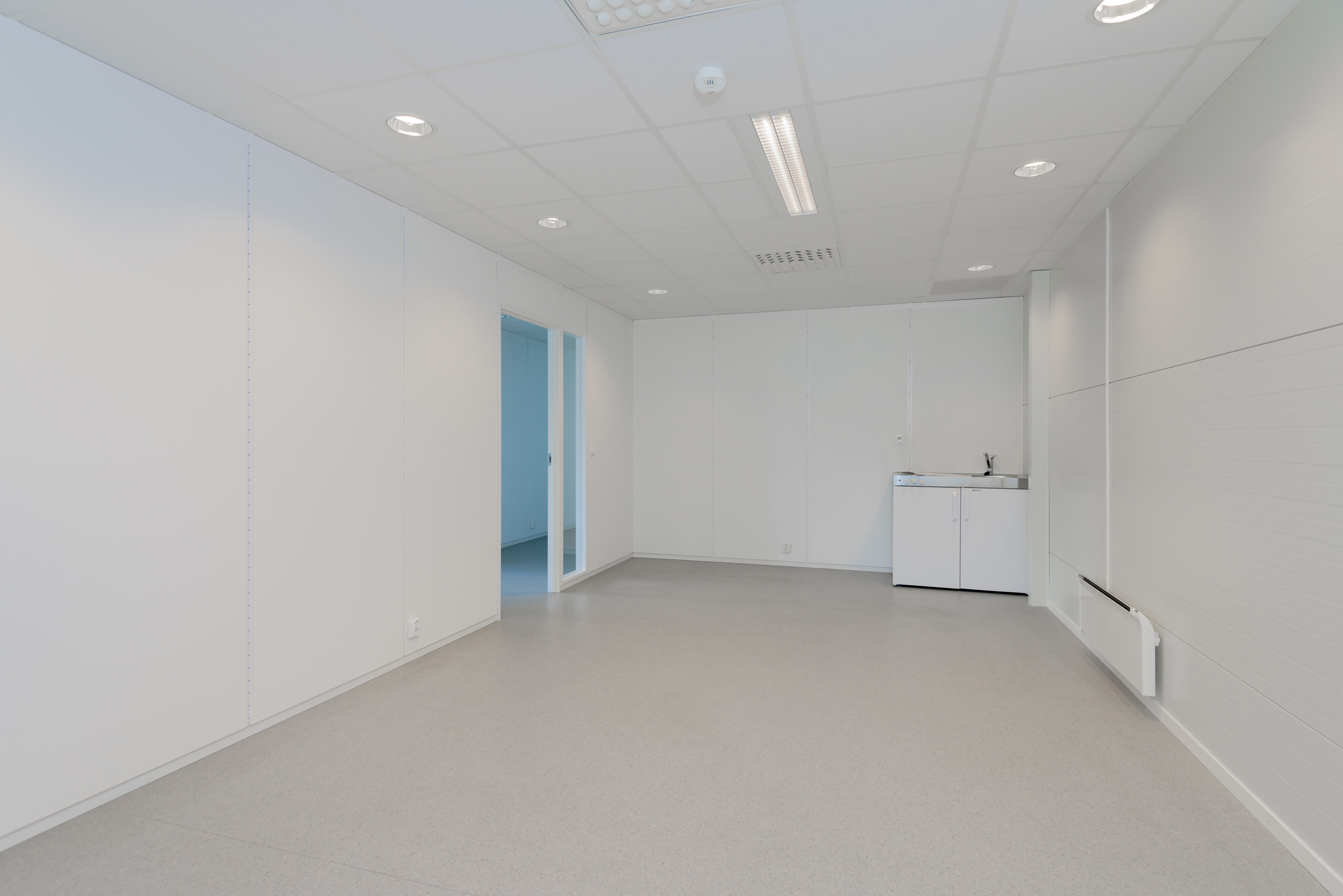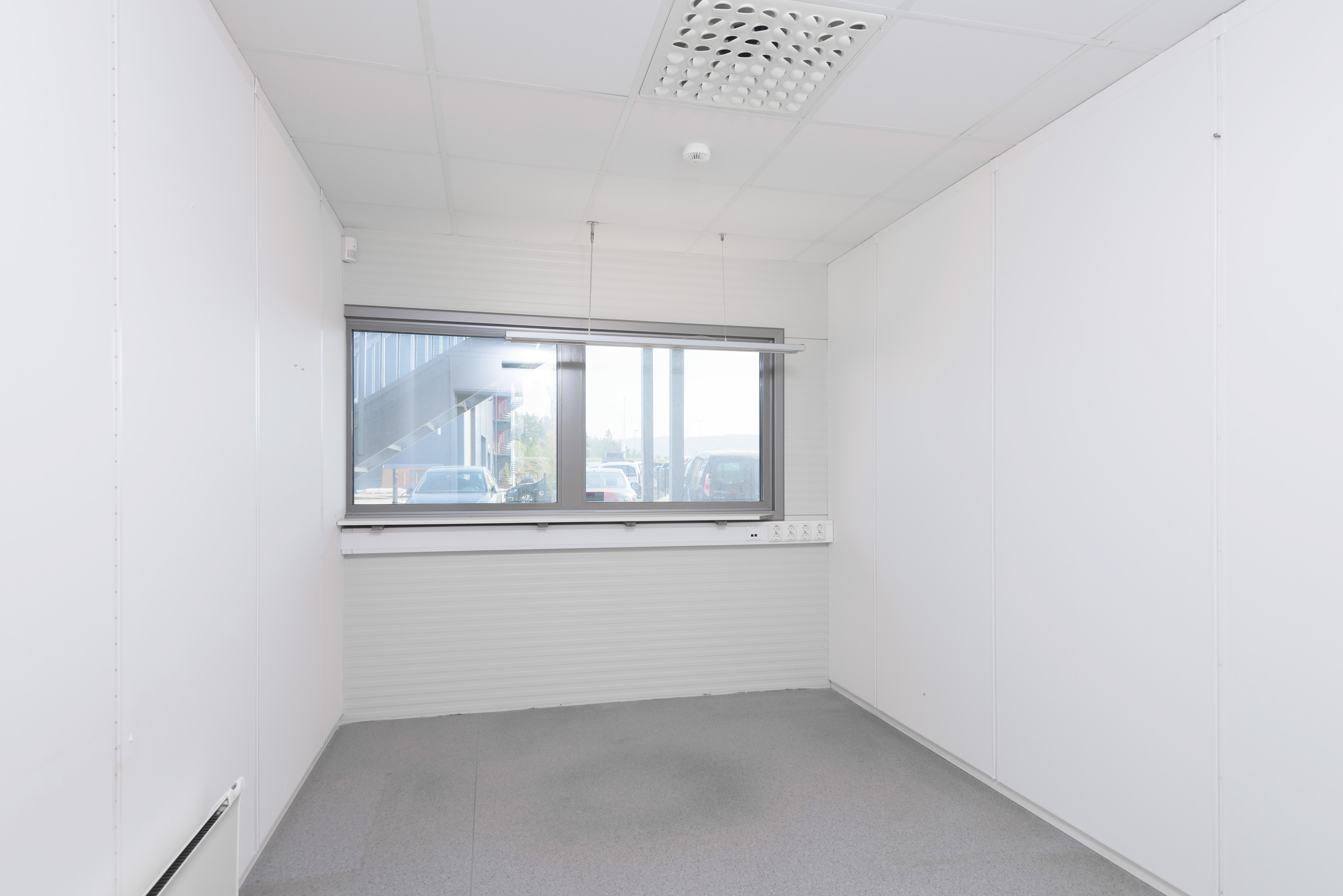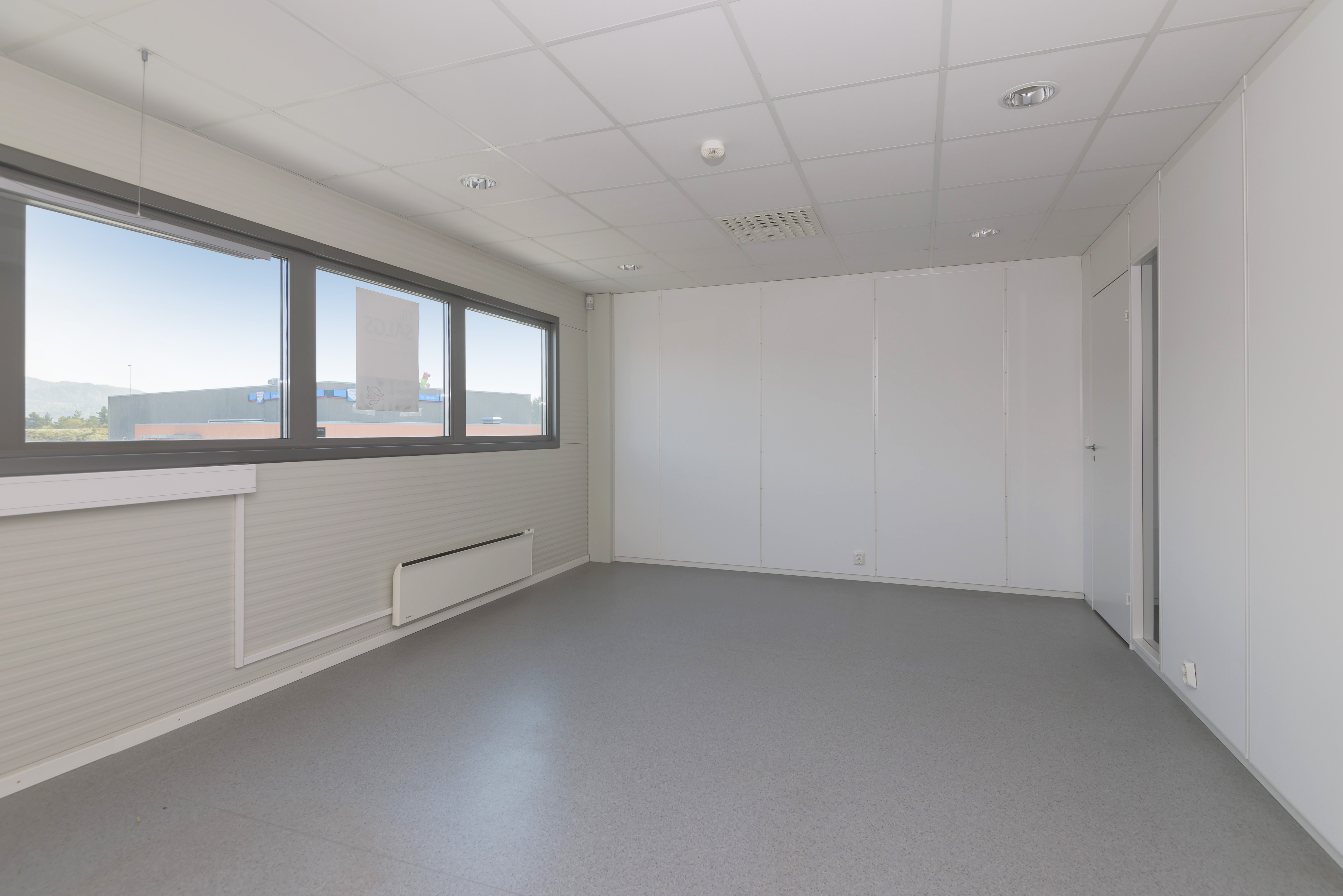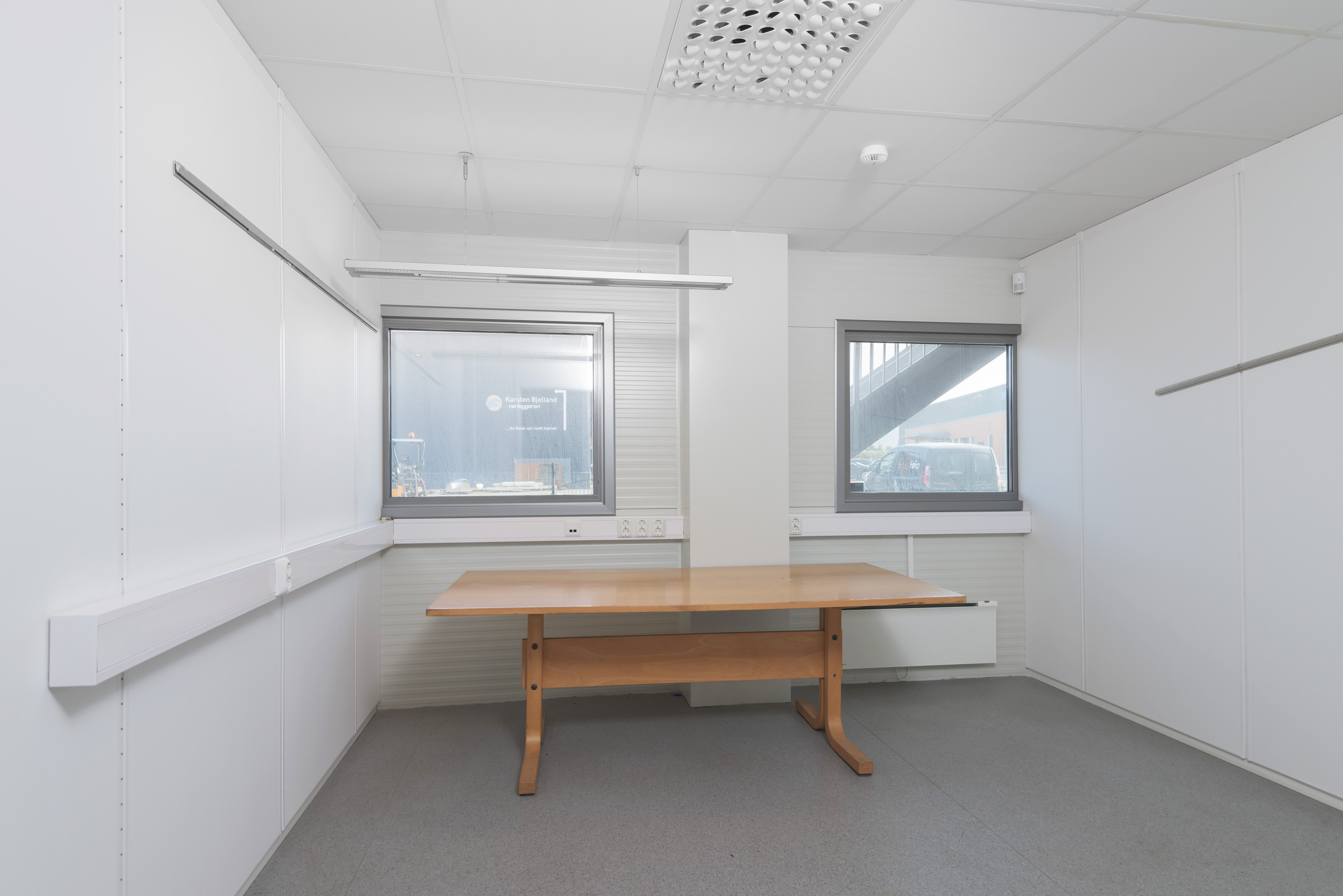 Moderne kontorer med store lyse vindusflater. Inneholder kontorer, møterom, wc, hcp-wc, garderobe.