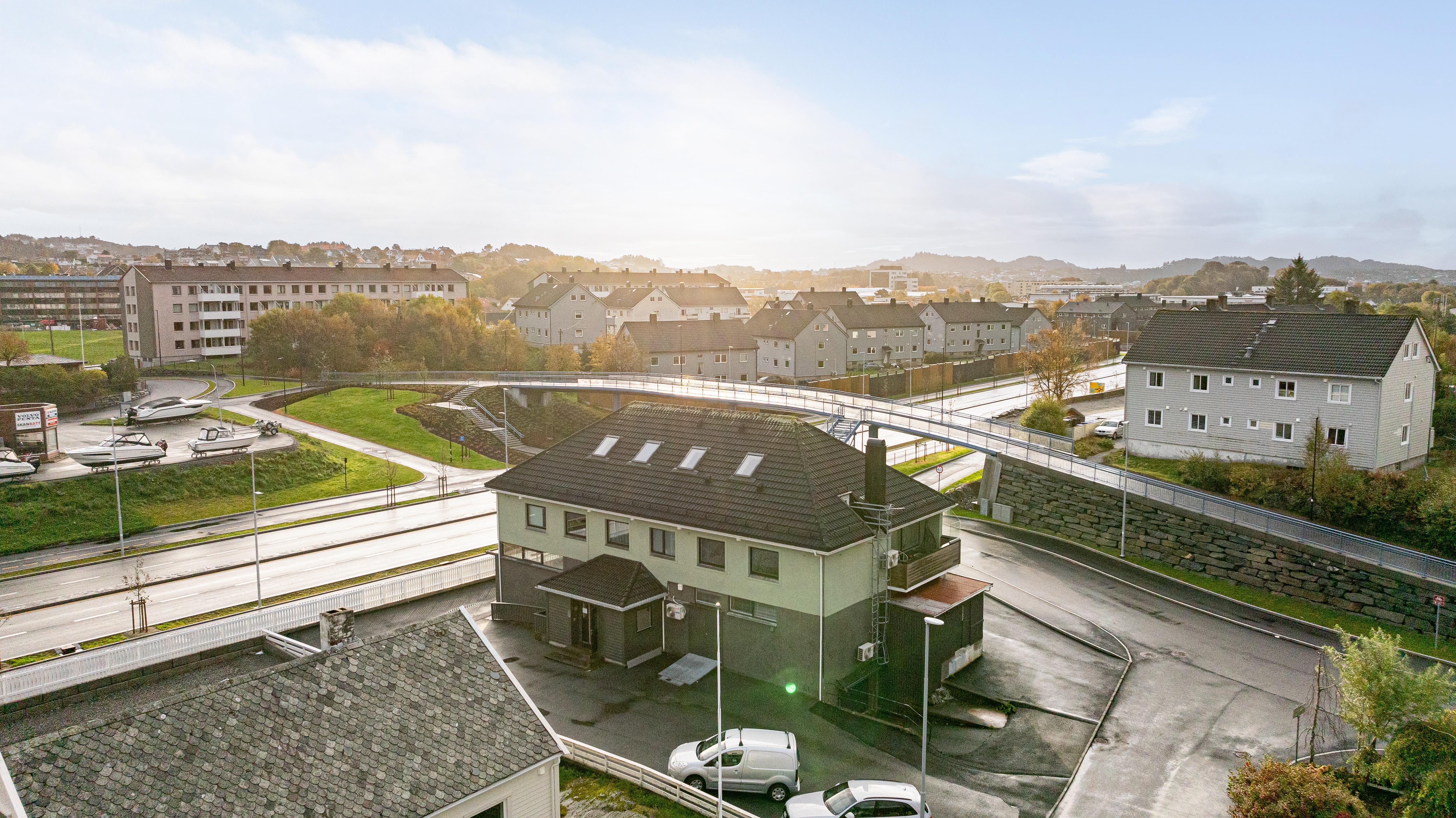 Adkomst via rundkjøringen ved Meny Karmsundgata og forbi Håvåsen skole.