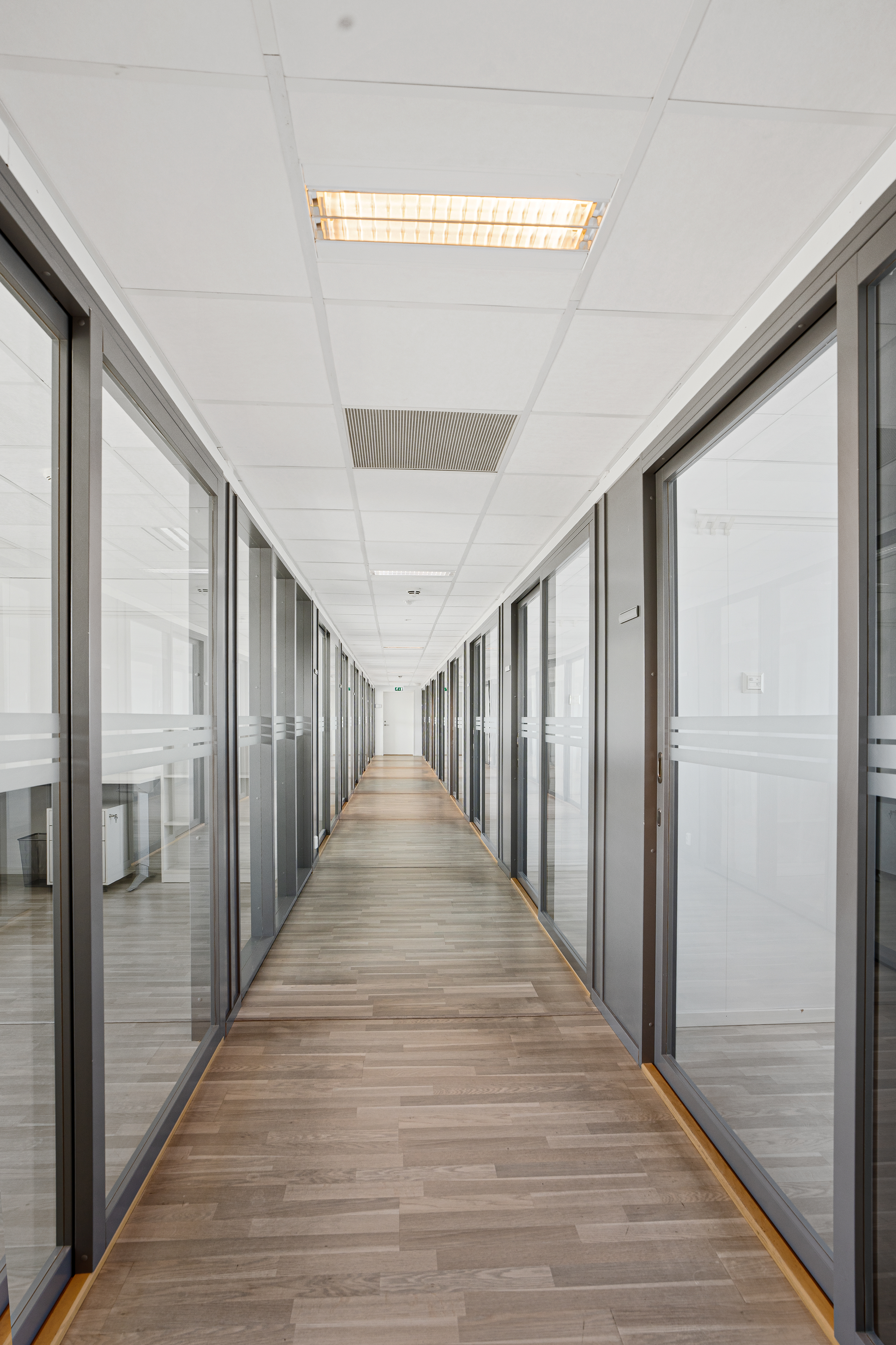 -I vestlig fløy er det 14 kontorer, ett dobbeltkontor og et møterom på 43m2.