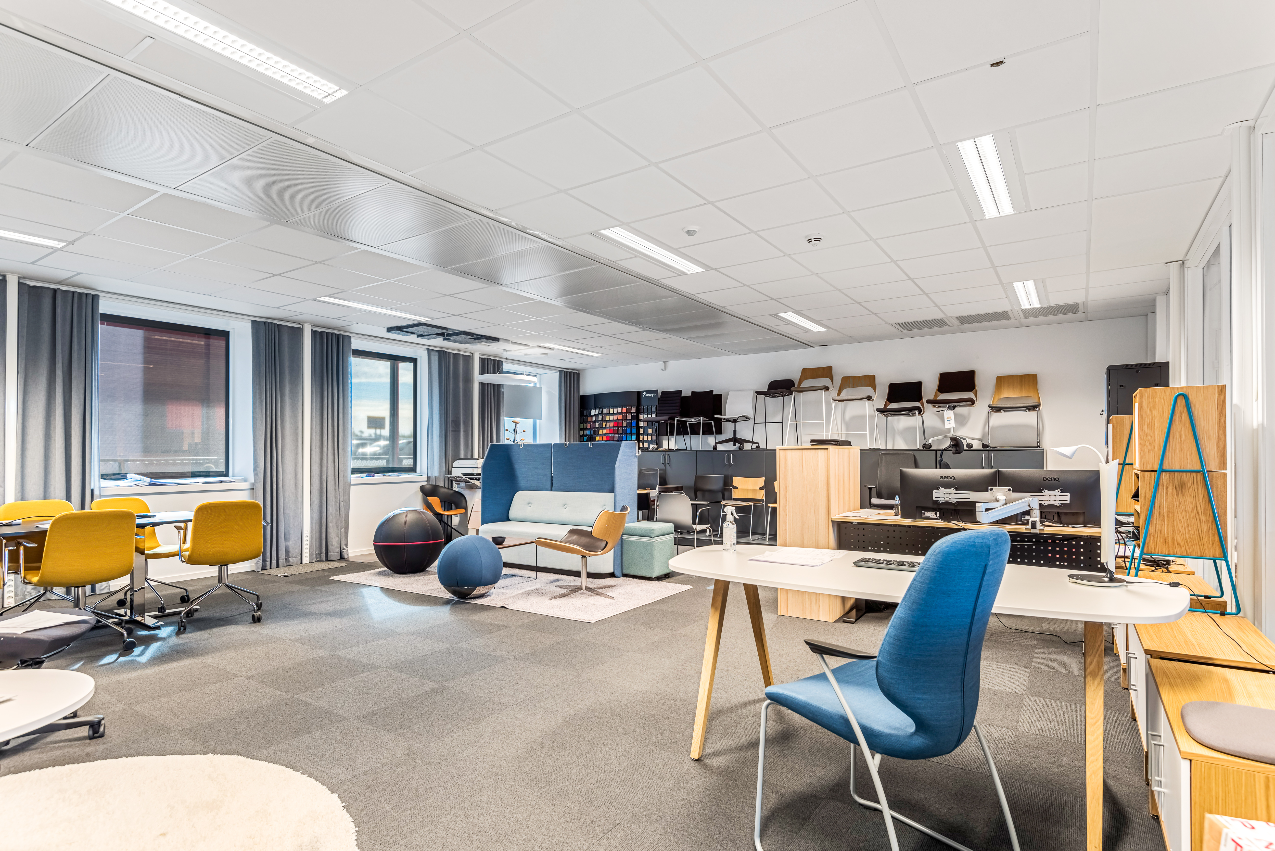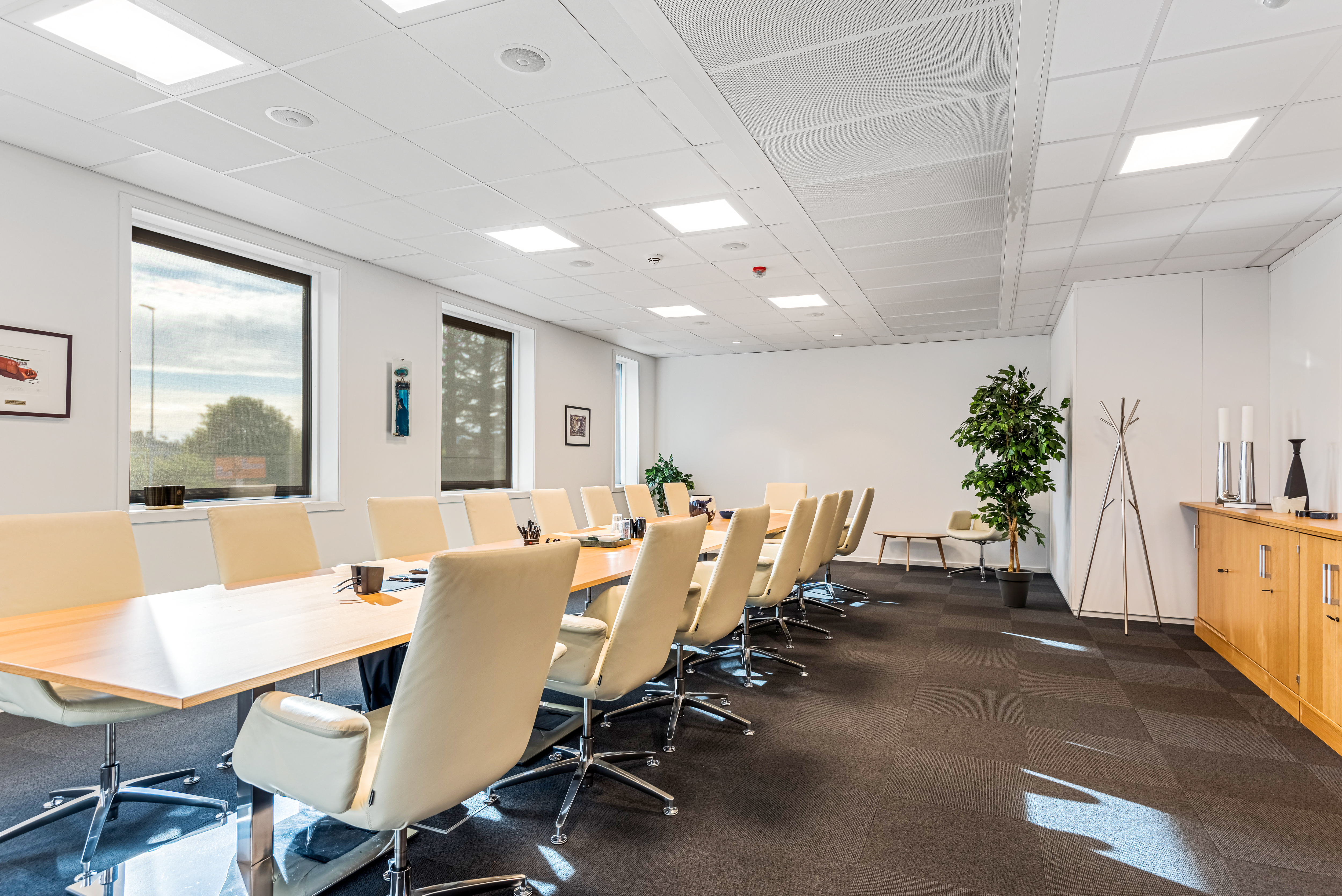 I bygget er det mulighet for å benytte felles kantine og møterom, resepsjonstjenester, samt møte/konferanserom.