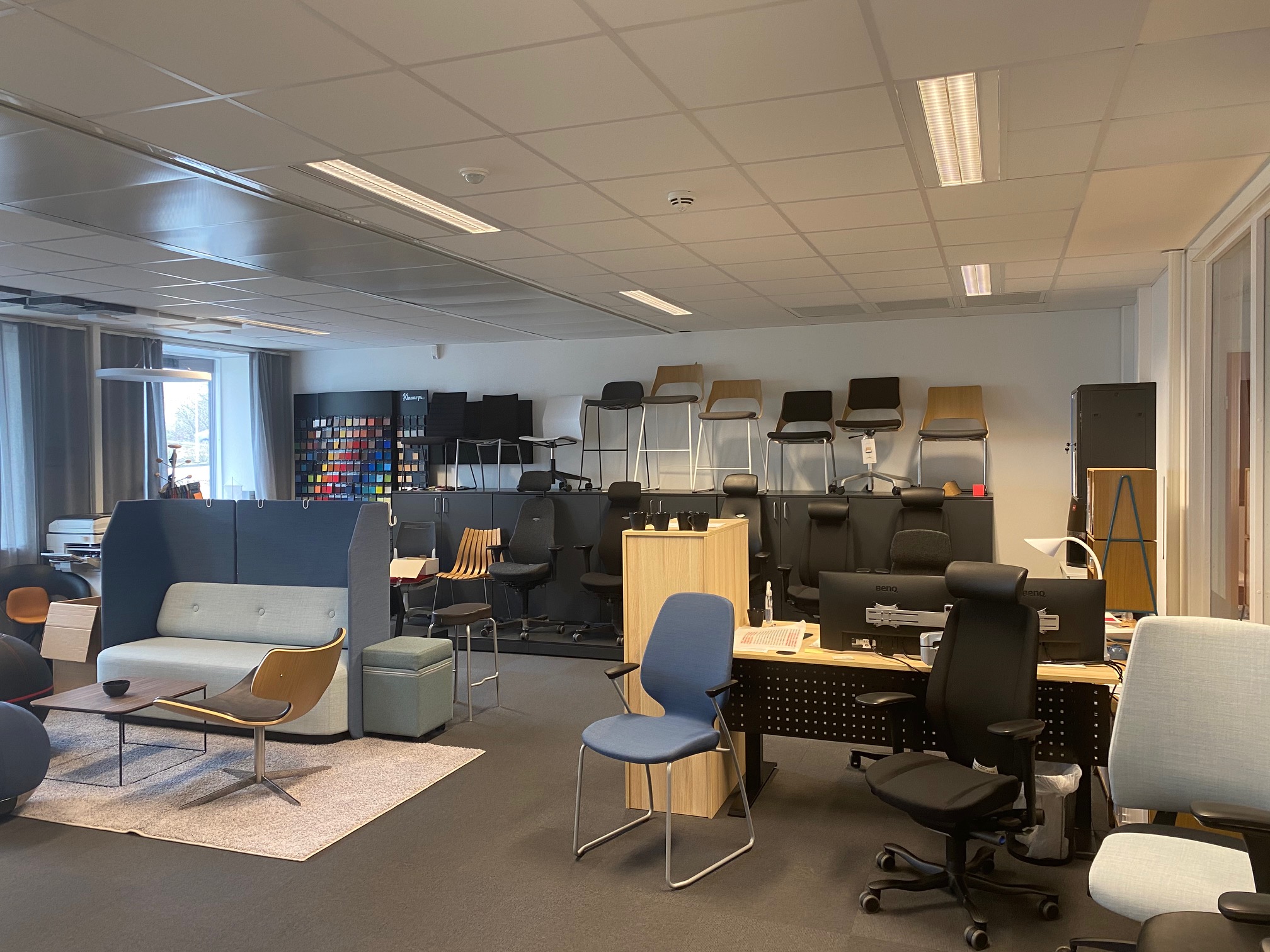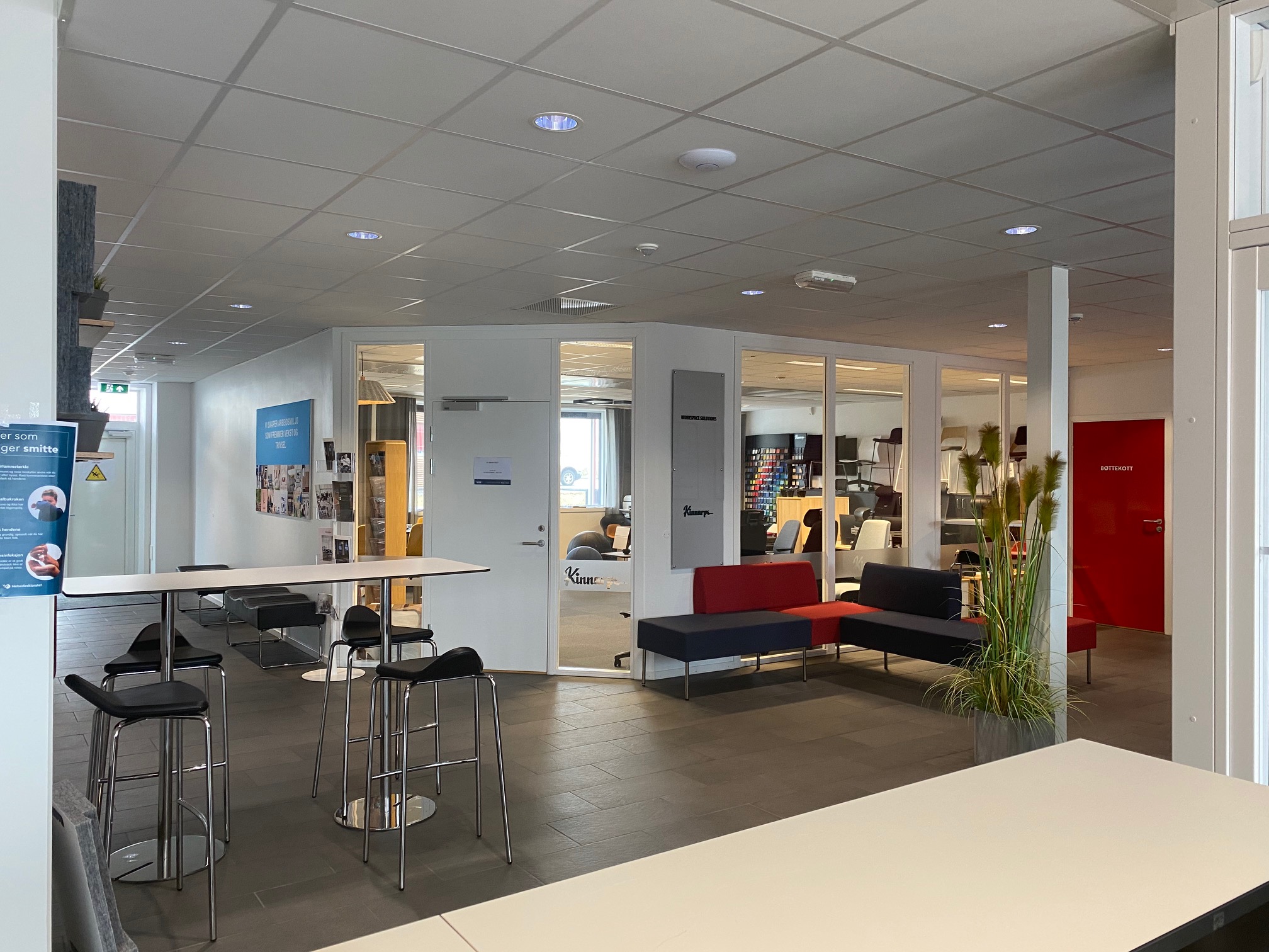 -96 m2 kontor/showroom rett ved hovedinngang. Synlig lokale i resepsjonsområde.