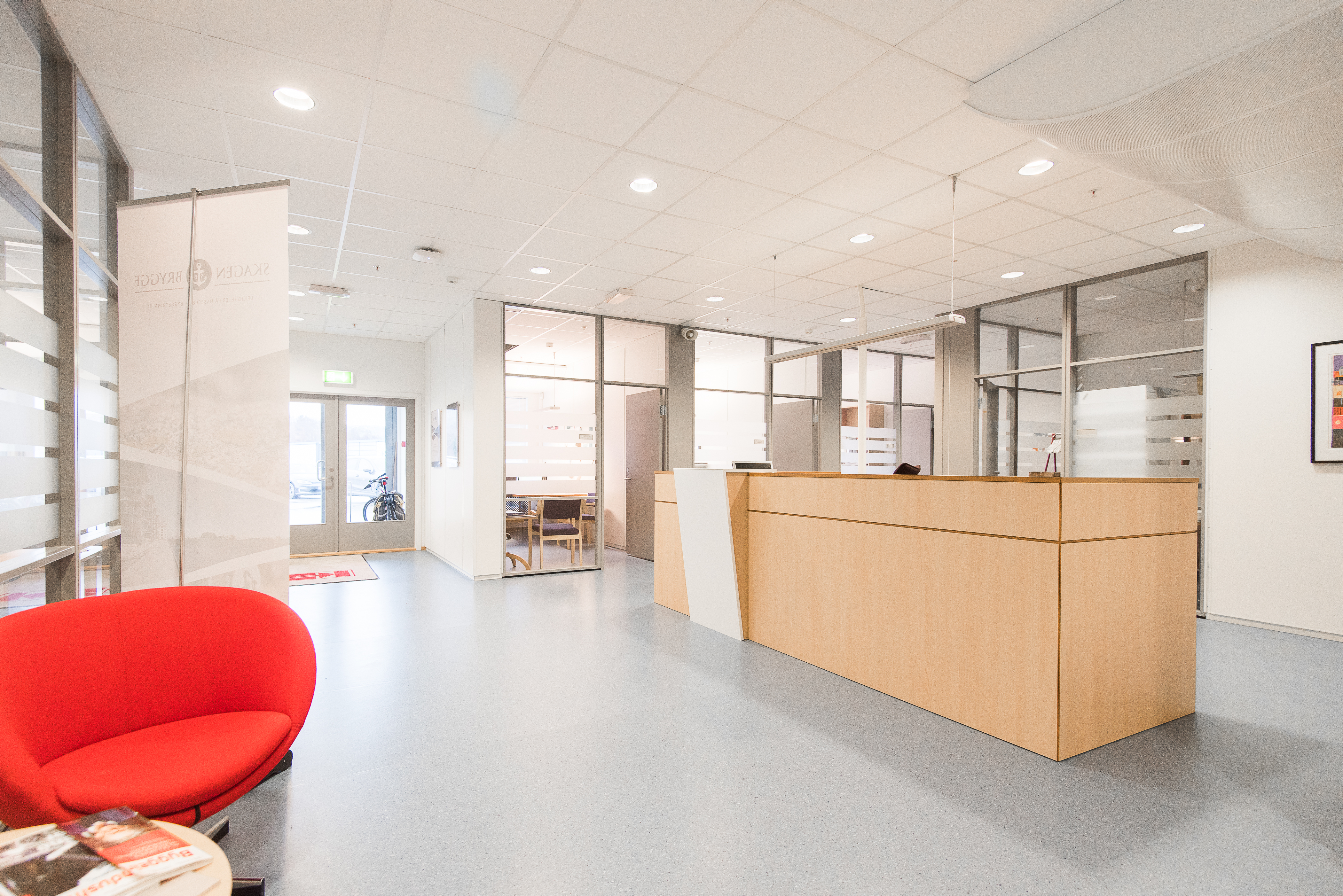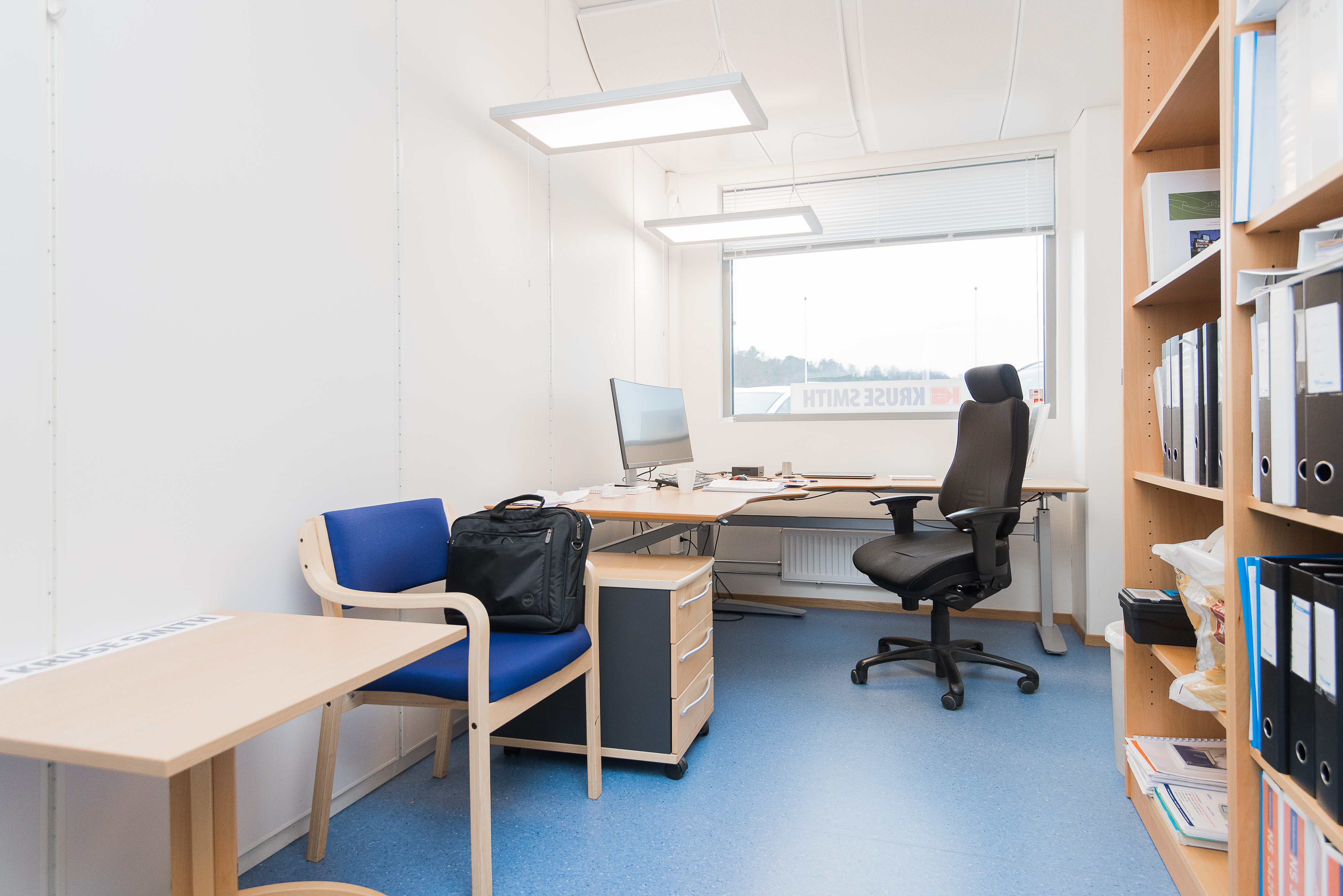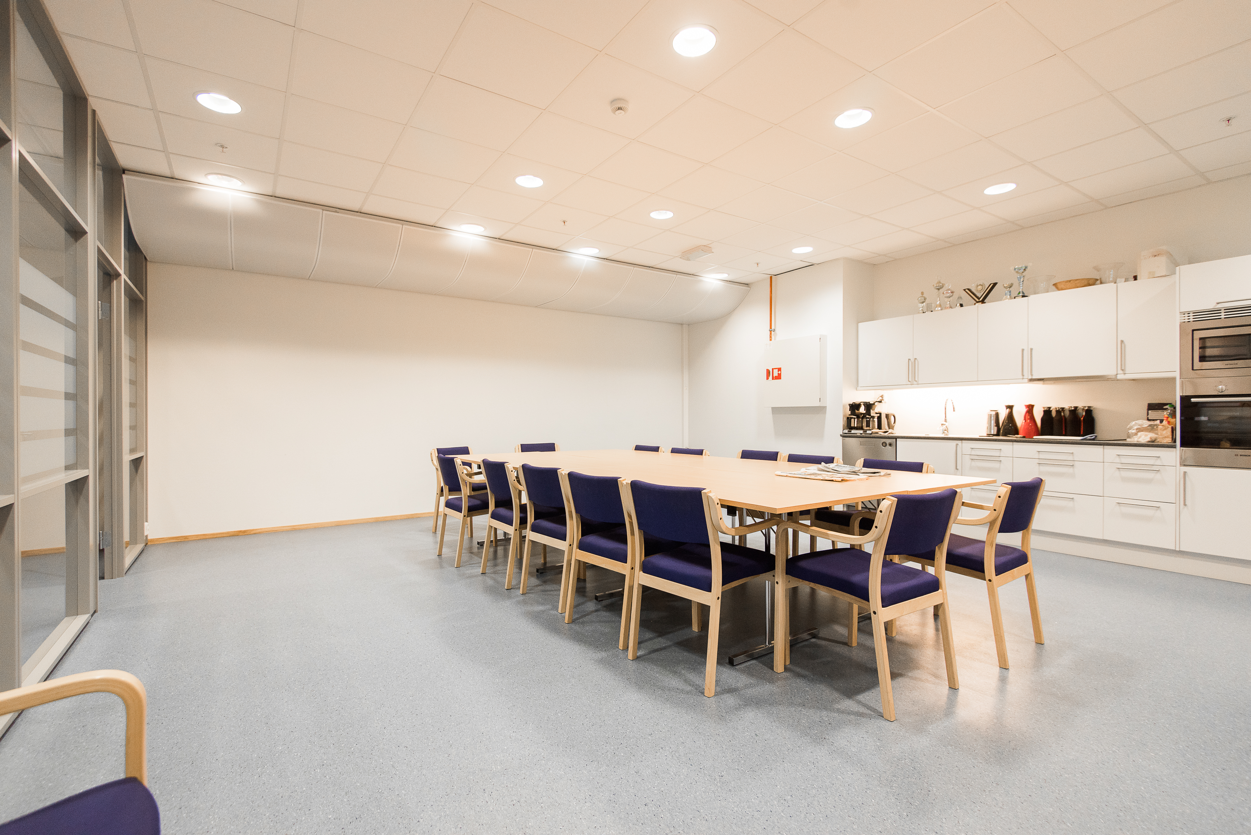 Ca. 15 cellekontorer, åpent landskap for ca 6 personer, spise/møterom, serverrom, kopirom, møterom, resepsjon, arkiv, garderobe/dusj/wc x 2, hcp-wc, mingleareal og diverse rom.