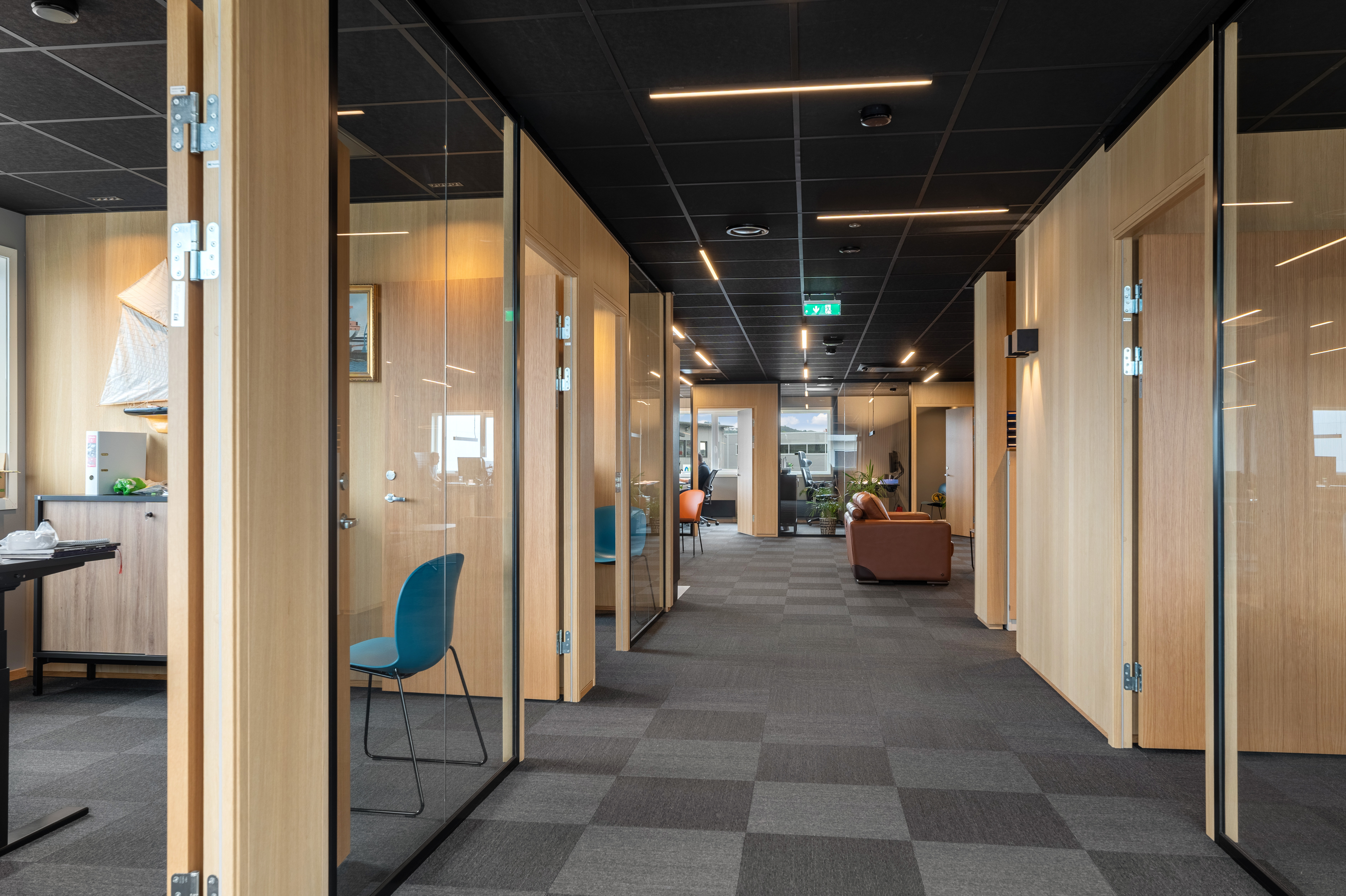 269 m2 i 2. etasje. Inneholder 6 romslige kontorer, møterom, sosial sone/kontorlandskap, kjøkkenkrok, stort møterom med foldevegg i glass som kan åpnes opp mot sosial sone, kopi, tekn.rom, 2 x wc, hcp wc, arkiv og gang. Lager/arkiv i tilknytning til kontorfløy.