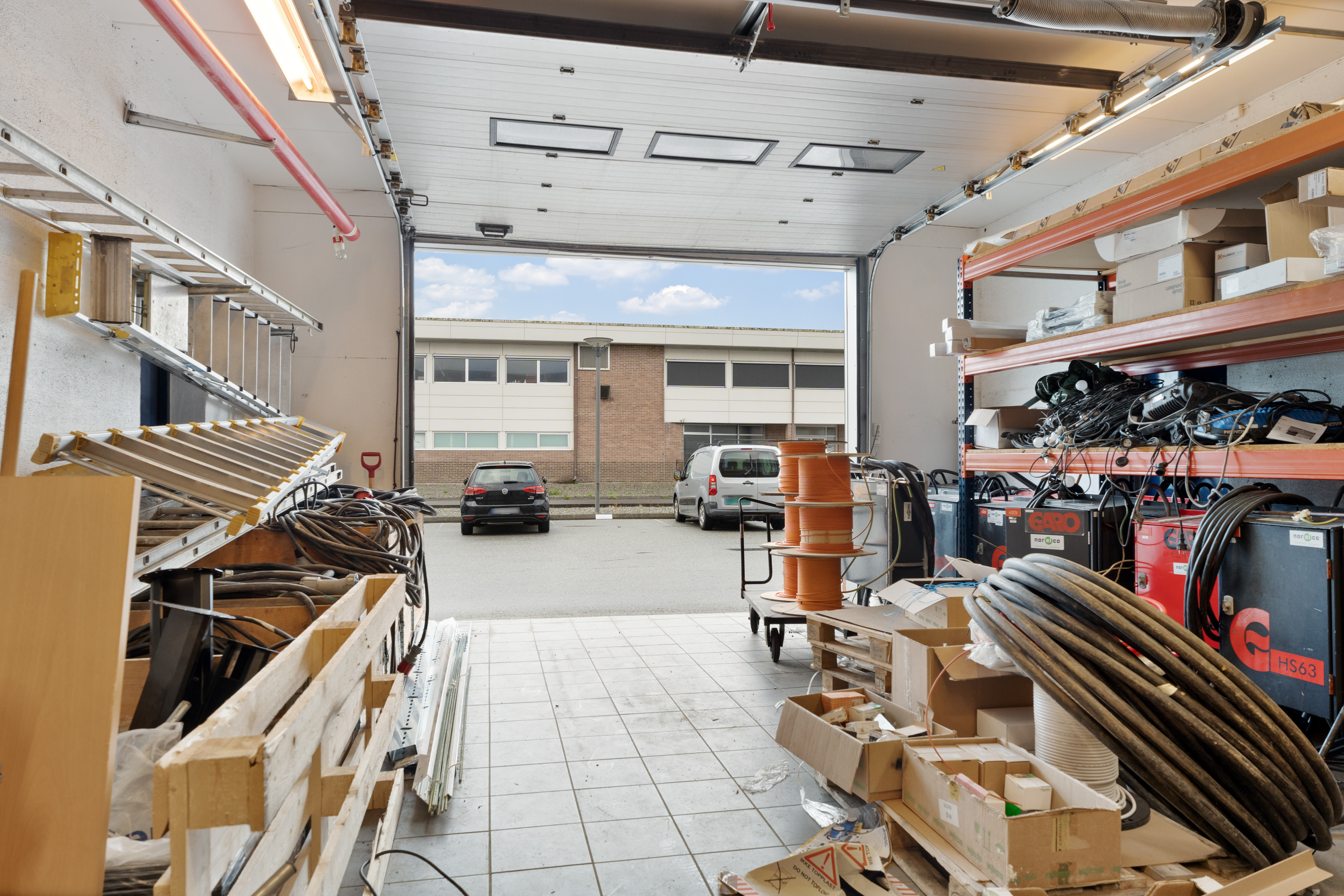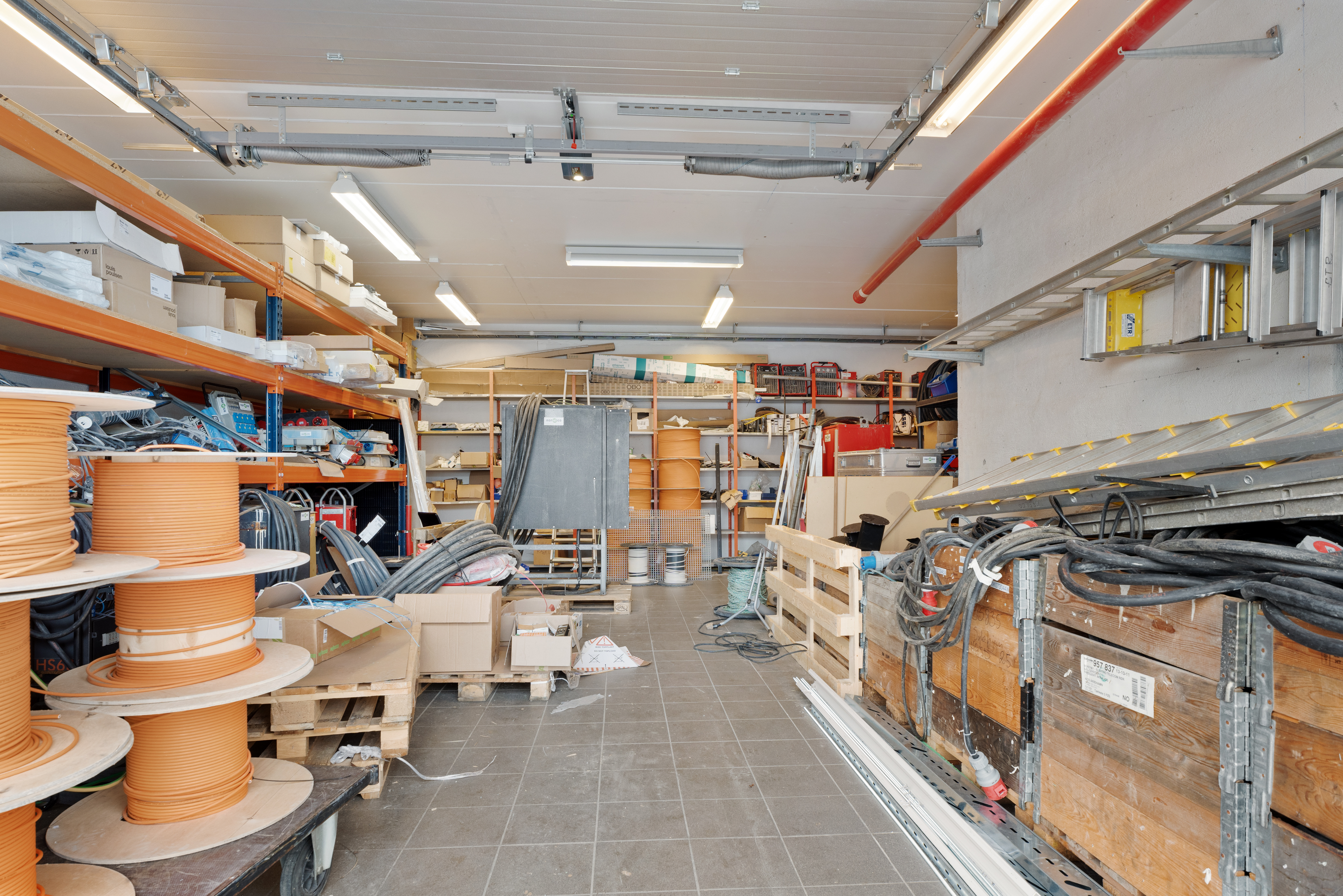 100 m2 lagerlokale med kjøreportene i 1. etasje i front av bygget.