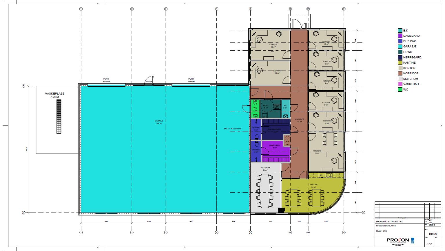 – 235 m2 med kontorer, garderober, kantine, møterom etc.