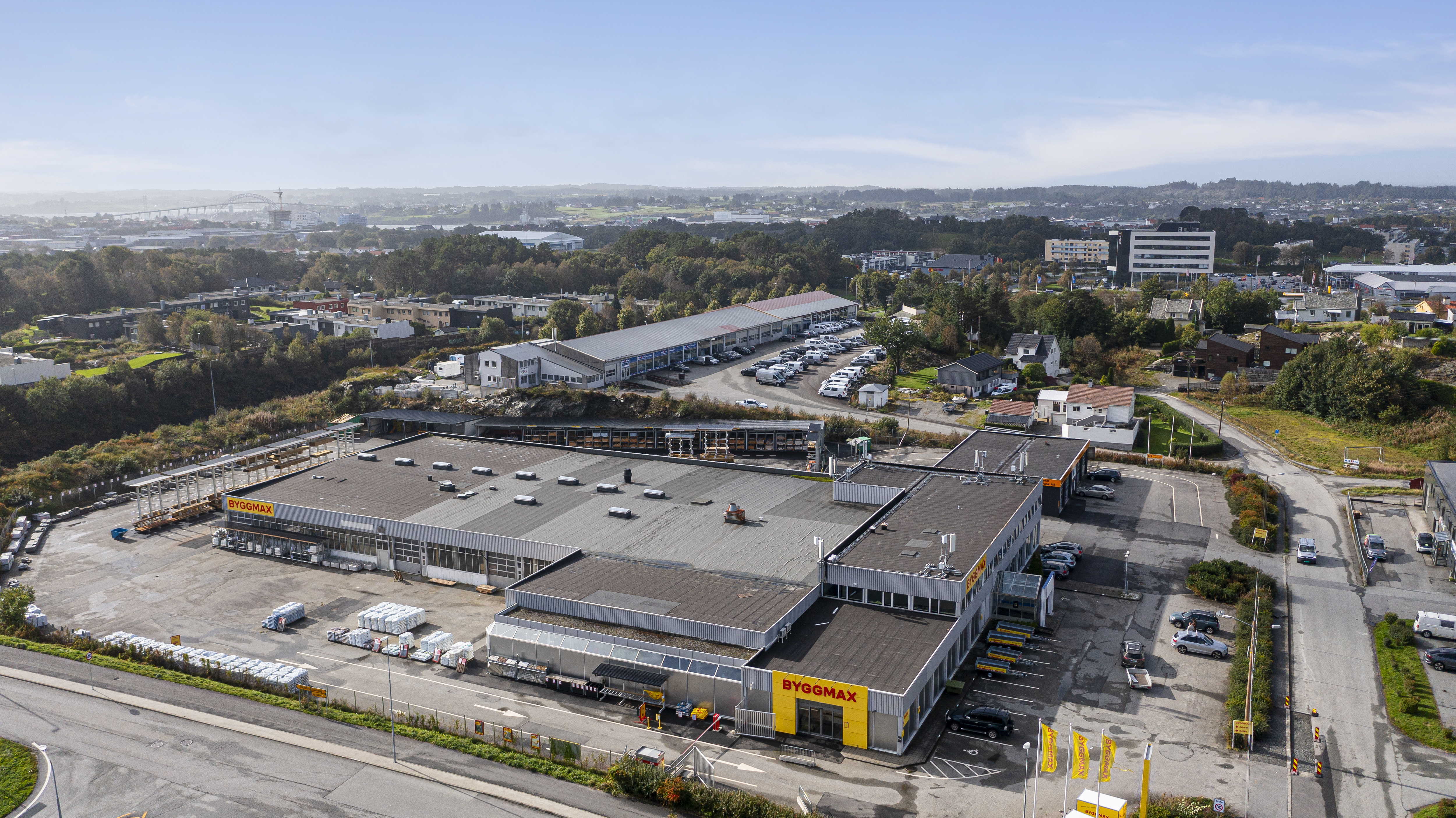 Lokalene ligger vegg i vegg med Byggmax og Flugger farve, som er i samme bygg. I tillegg er det vaskehaller i nabobygg.