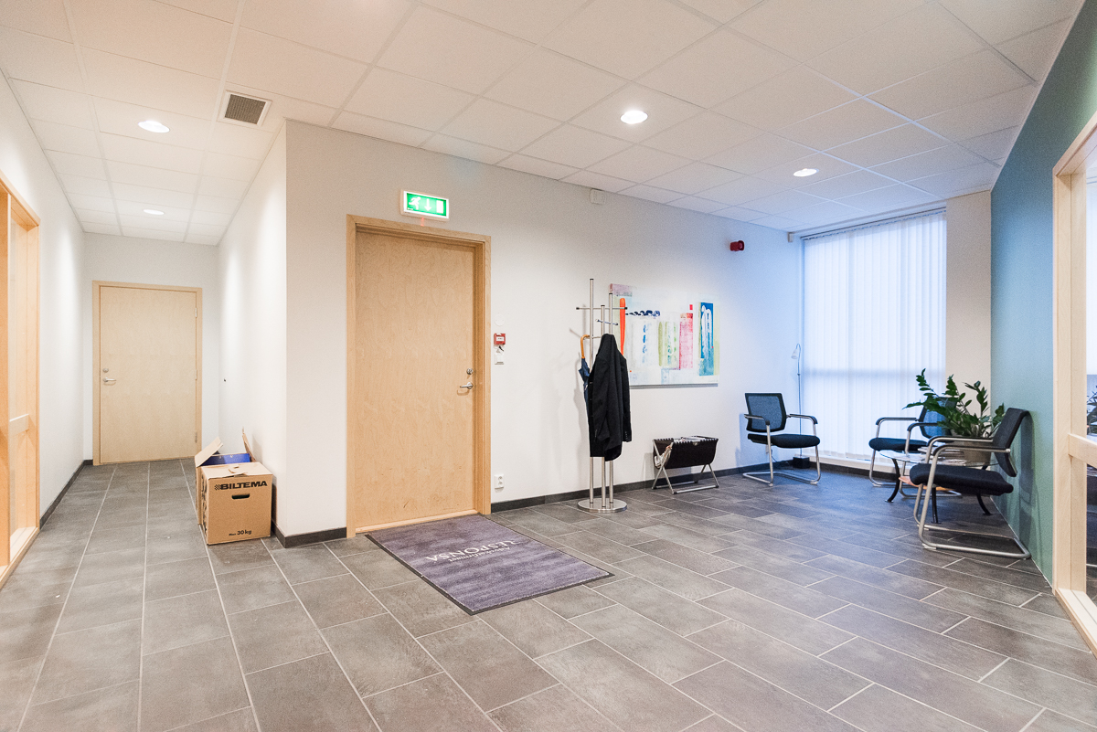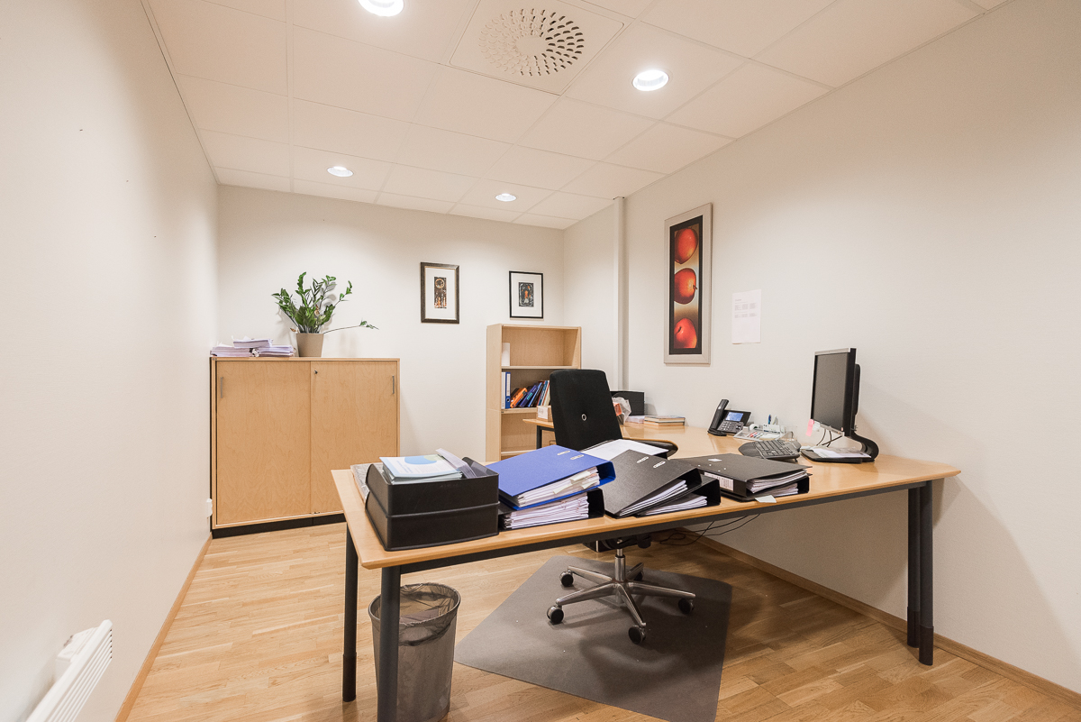 Seksjonen er på 280 m2 og inneholder 5 cellekontorer, spiserom/kjøkken, møterom, arkiv/lager, kopirom og toalettfasiliteter. Det er stor parkeringsplass for kunder og ansatte. Seksjonen ble bygd i 2007 og fremstår som tidsriktig med ventilasjon og overflater.