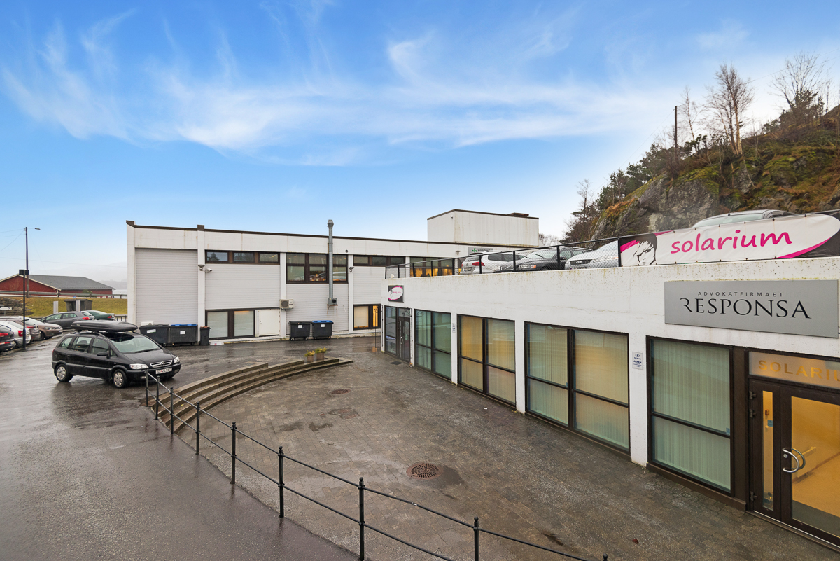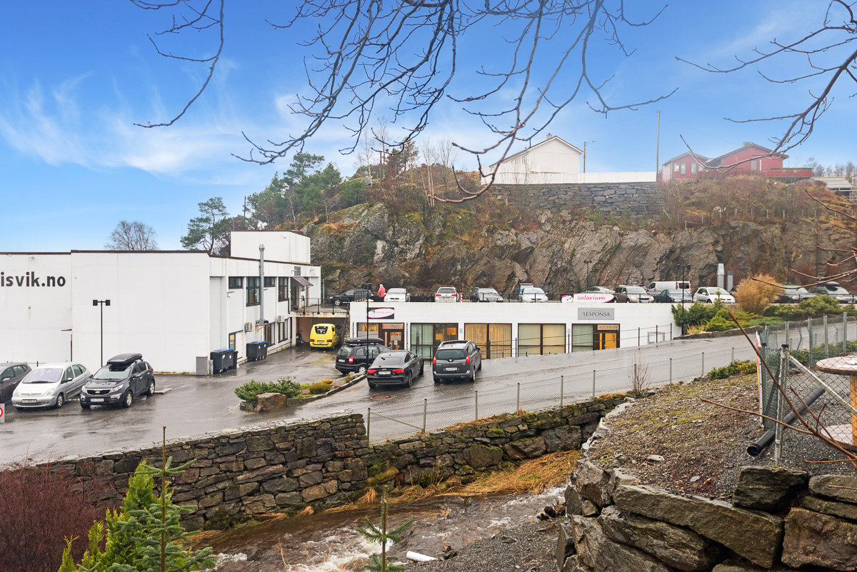 I forretningseiendom langs E134 i Isvik er det en kontorseksjon til leie.