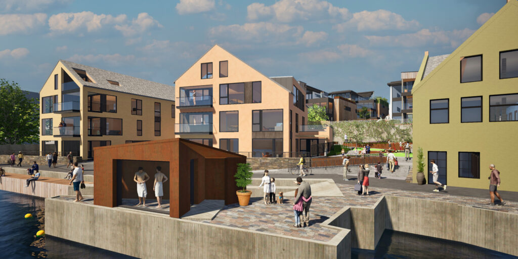 Borettslagets fellesgjeld finansieres med hele 10 års avdragsfrihet, hvor lånet har totalt 40 års løpetid. Samtidig har fellesgjelden IN-ordning, som gir mulighet for individuell nedbetaling av fellesgjelden. Du har med andre ord god fleksibilitet og bestemmer selv hvordan du vil legge opp din økonomi. Salhusvegen Brygge handler livet ikke bare om hvor du bor, men også hvordan du lever. Som en del av prosjektets gjennomtenkte fasiliteter, får beboerne tilgang til et flott kaianlegg med sjøpromenade og en moderne, felles badstue – Et sosialt, avslappende samlingspunkt for naboene, og en hverdagsluksus som gjør det ekstra godt å bo her. Prosjektet inkluderer også et innbydende, felles selskapslokale med enkelt kjøkken og eget WC – Perfekt til feiringer, kaffelag, eller hyggelige kvelder med gode naboer. Det vil også være garderobefasiliteter til badstuen i samme bygg.